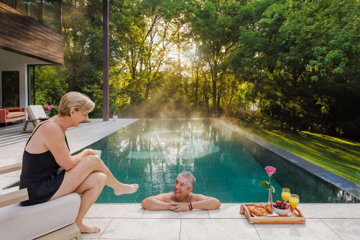 Our 35’ x 13’ TRESSS® Moving Pool Floor reaches depths up to 8 feet, offering a fully adaptable space for every moment. When closed, the family enjoys practicing soccer on the solid surface; at four feet, it becomes the perfect setting for lively volleyball games; at shallow settings, toddlers and neighbors play safely; and on warm summer nights, the parents gather with friends to dance and celebrate. At full depth, it transforms into an 8-foot pool ideal for diving and swimming.
